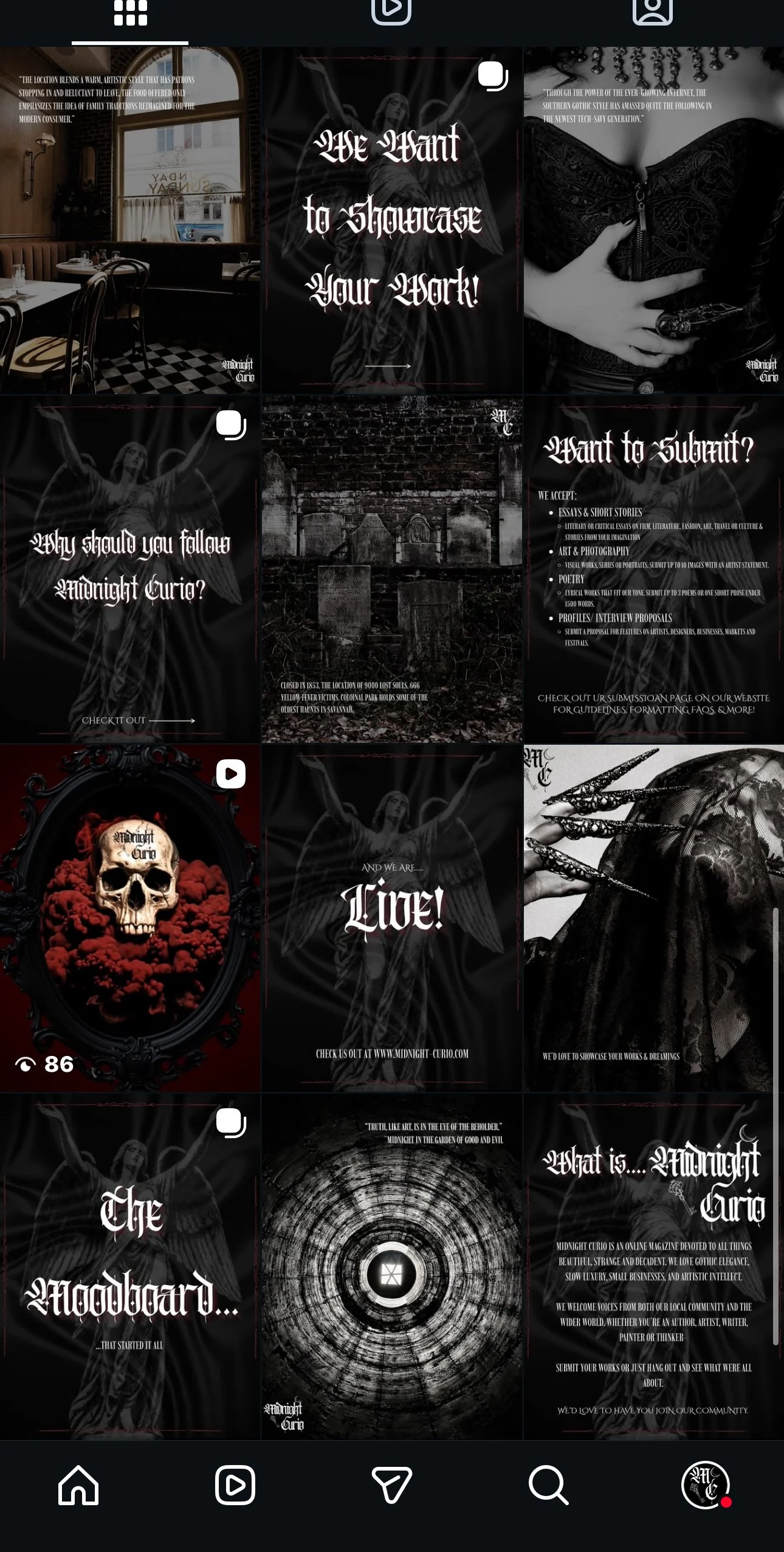 Midnight Curio is a Gothic Lifestyle online publication. It showcases local Savannah spots while also championing independent artists works and giving them a place to display it.